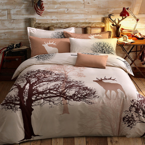 Mima fresh style trees deer bedlinens high quality sanding cotton fabric Queen/King size duvet cover set bedding set-in Bedding Sets from Home